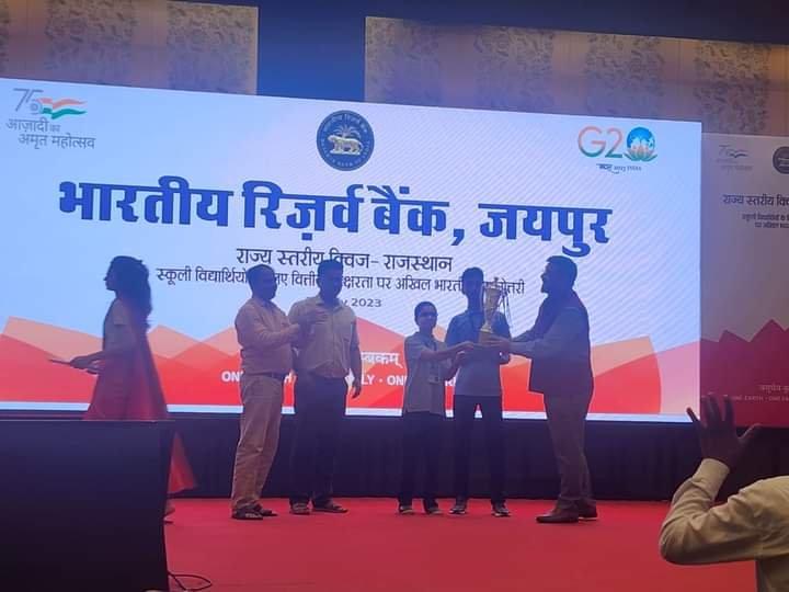जालौर।जी-20 के तत्वावधान में भारतीय रिज़र्व बैंक, जयपुर द्वारा राज्य स्तरीय प्रश्नोत्तरी प्रतियोगिता में जालोर जिले ने प्रथम स्थान प्राप्त किया।अग्रणी बैंक प्रबंधक तेजपाल ने जानकारी देते हुए बताया कि भारत को दिनांक 1 दिसंबर 2022 से 30 नवंबर 2023 तक जी-20 की अध्यक्षता का स्वर्णिम अवसर प्राप्त हुआ है। जी-20 के तत्वावधान में भारतीय रिज़र्व बैंक, जयपुर द्वारा स्कूली छात्र-छात्राओं में वित्तीय शिक्षा के बारे में जागरूकता सृजित करने के उद्देश्य से जालोर जिले के सरकारी स्कूलों के आठवीं से दसवीं कक्षा के विद्यार्थियों के लिए वित्तीय साक्षरता पर ब्लॉक स्तर पर 10 मई को तथा जिला स्तर पर 15 जून को अखिल भारतीय प्रश्नोतरी प्रतियोगिता का आयोजन किया गया। इसके उपरांत बुधवार को जयपुर स्थित निजी होटल में राज्य स्तरीय प्रश्नोत्तरी का आयोजन किया गया जिसमें जालोर जिले को प्रथम स्थान प्राप्त हुआ।उन्होंने बताया कि राज्य स्तरीय क्विज में भीनमाल की महात्मा गांधी राजकीय माध्यमिक विद्यालय की अद्या वाजपेयी व कपील सुखाडिया की टीम ने जिले का प्रतिनिधित्व किया। विजेताओं को रू 10 हजार की राशि पुरुस्कार स्वरूप उनके खाते मे प्रदान की जायेगी। जालोर की विजेता टीम भारतीय रिज़र्व बैंक की अंचल स्तर पर होने वाली प्रश्नोतरी मे राज्य का प्रतिनिधित्व करेंगी।