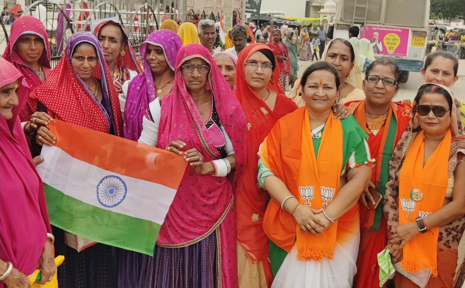 श्रीमती मंजू सोलंकी के नेतृत्व में काफी संख्या में महिलाओं ने तिरंगा यात्रा निकाली।