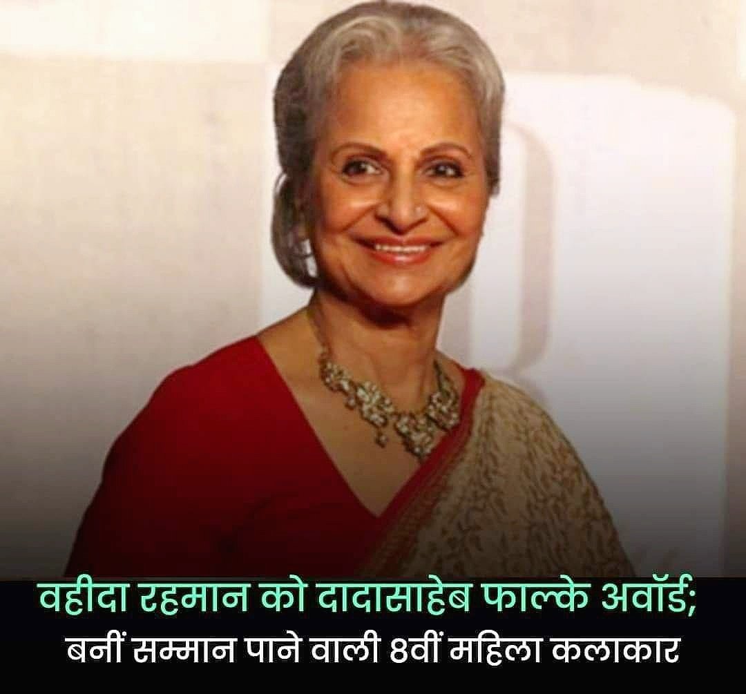 वहीदा रहमान को 53वें दादा साहब फाल्के लाइफटाइम अचीवमेंट पुरस्कार से सम्मानित किया जाएगा।