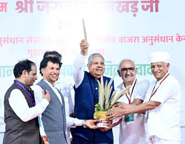 बाड़मेर में अपने संबोधन में उपराष्ट्रपति श्री धनखड़ ने कहा कि देश की अर्थव्यवस्था में हमारे किसानों का अत्यंत महत्वपूर्ण योगदान है। किसान भाई-बहन देश का पेट भरते हैं। किसान पुत्र राष्ट्रवाद को हमेशा सर्वोपरि रखते हैं और देश के विकास में सर्वश्रेष्ठ योगदान करते हैं। उन्होंने कहा कि हमारा देश बदलाव का केंद्र बना है, हमें इस पर गर्व करना चाहिए।केंद्रीय कृषि मंत्री श्री तोमर ने नई सौगातों के लिए किसानों व कृषि वैज्ञानिकों को बधाई देने के साथ ही उम्मीद जताई कि बाड़मेर का क्षेत्रीय श्री अन्न अनुसंधान केंद्र एक नई क्रांति का सूत्रपात करेगा। उन्होंने प्रसन्नता जताई कि किसानों व कृषि वैज्ञानिकों के कारण हमारा देश आज खाद्यान्न, बागवानी, दुग्ध उत्पादन में अग्रणी है। उन्होंने कहा कि प्रधानमंत्री श्री मोदी के मार्गदर्शन में केंद्रीय कृषि एवं किसान कल्याण मंत्रालय तथा आईसीएआर द्वारा किसानों एवं वैज्ञानिकों के हित में अनेक कदम उठाए गए हैं, जिनसे राजस्थान के किसान एवं वैज्ञानिक भी लाभान्वित हो रहे हैं।