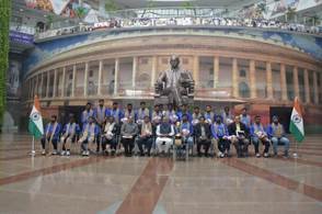 Minister of Social Justice and Empowerment, Dr. Virendra Kumar, today met the Indian Blind Cricket T-20 World Cup winning team...