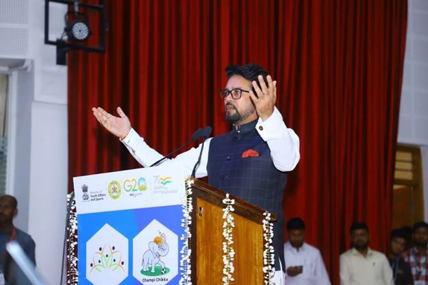 केंद्रीय सूचना एवं प्रसारण व युवा कार्यक्रम एवं खेल मंत्री श्री अनुराग ठाकुर आज त्रिपुरा के अगरतला में आयोजित "युवा...