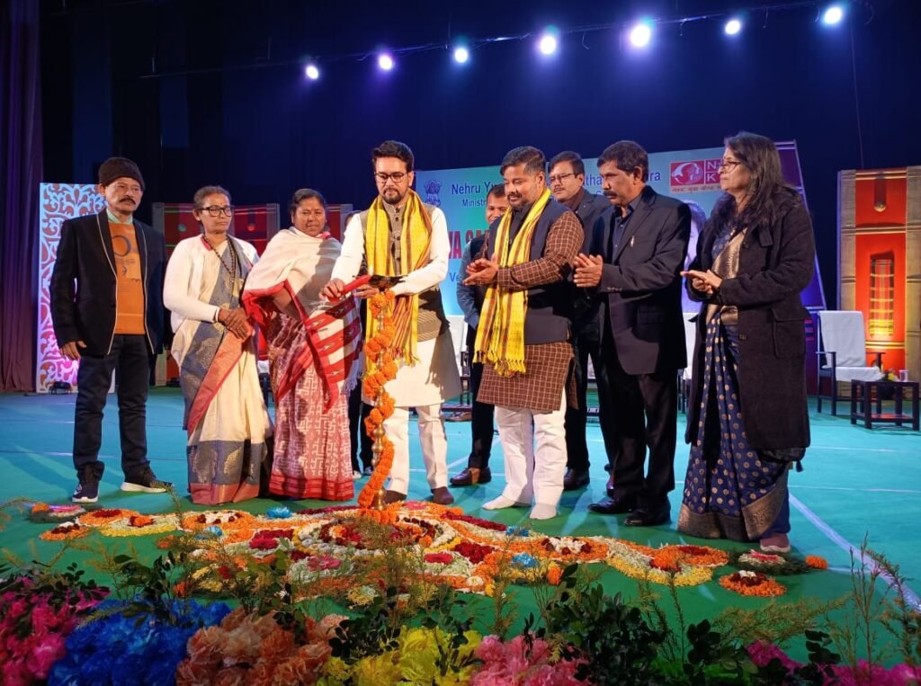 केंद्रीय सूचना एवं प्रसारण व युवा कार्यक्रम एवं खेल मंत्री श्री अनुराग ठाकुर आज त्रिपुरा के अगरतला में आयोजित "युवा...