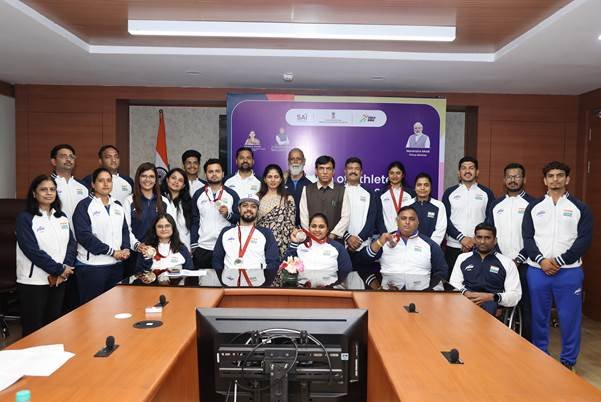 New Delhi-Union Minister of Youth Affairs & Sports and Labour & Employment, Dr. Mansukh Mandaviya along with Union Minister of...